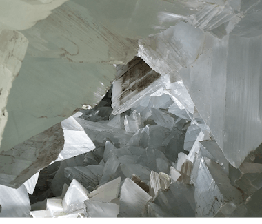 The Pulpí Geode is about 8 meters long by 2 meters high and is covered with gigantic gypsum crystals.